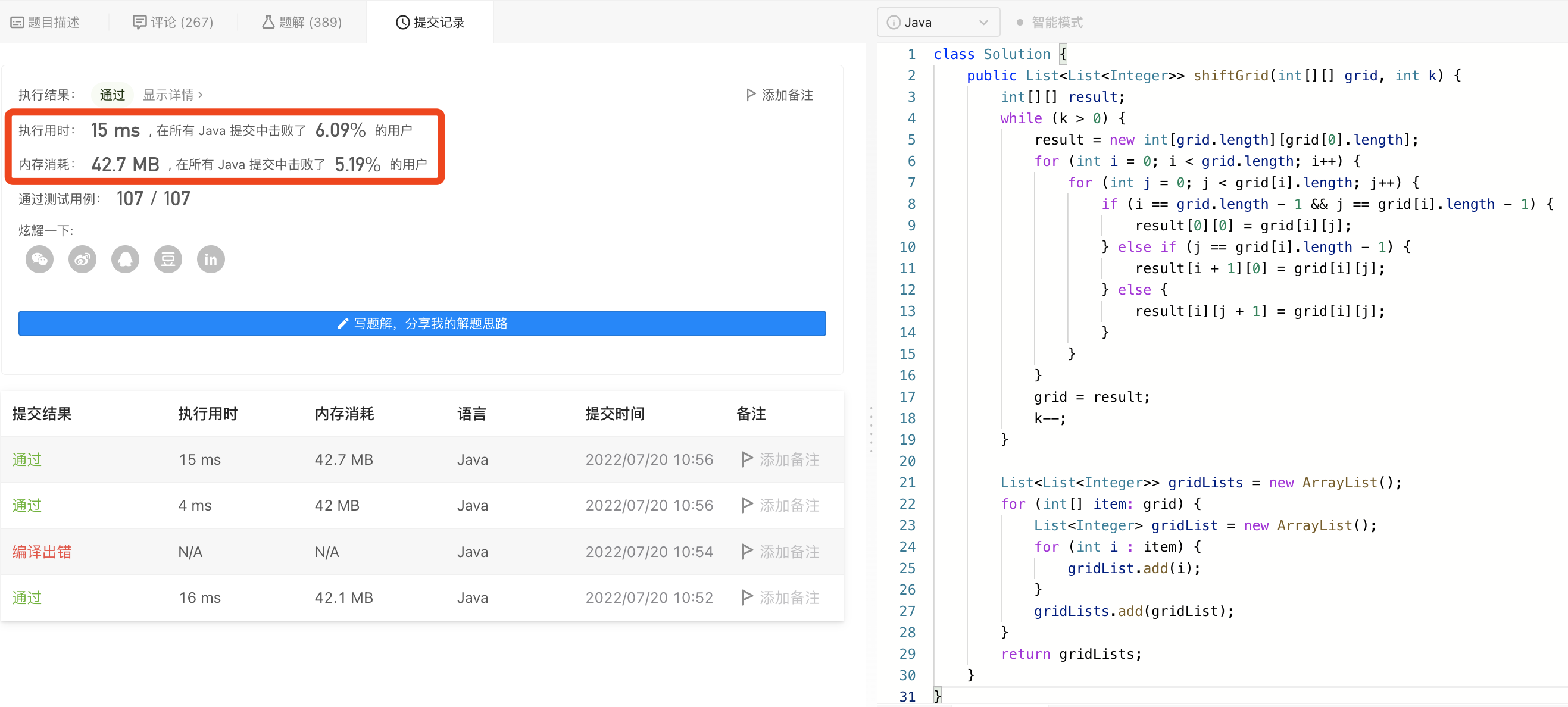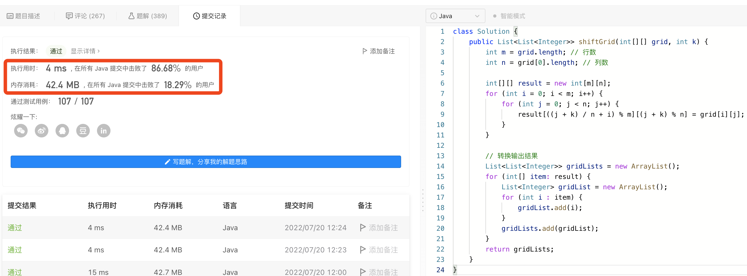 给你一个 m 行 n 列的二维网格 grid 和一个整数 k。你需要将 grid 迁移 k 次。