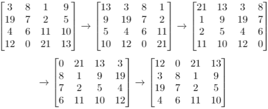 【输入】grid = [[3,8,1,9],[19,7,2,5],[4,6,11,10],[12,0,21,13]], k = 4