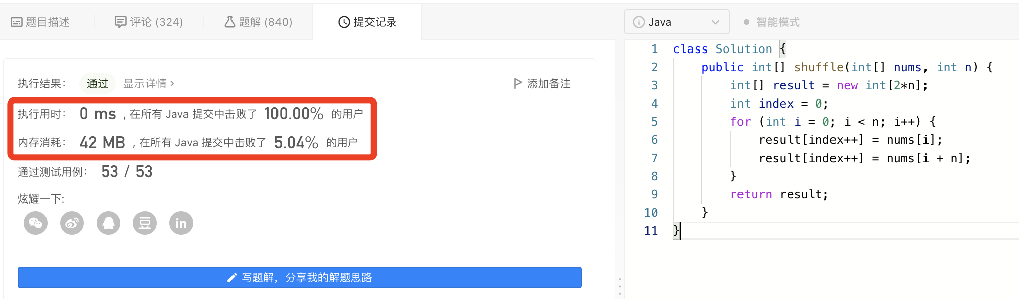 给你一个数组 nums ,数组中有 2n 个元素,按 [x1,x2,...,xn,y1,y2,...,yn] 的格式排列。