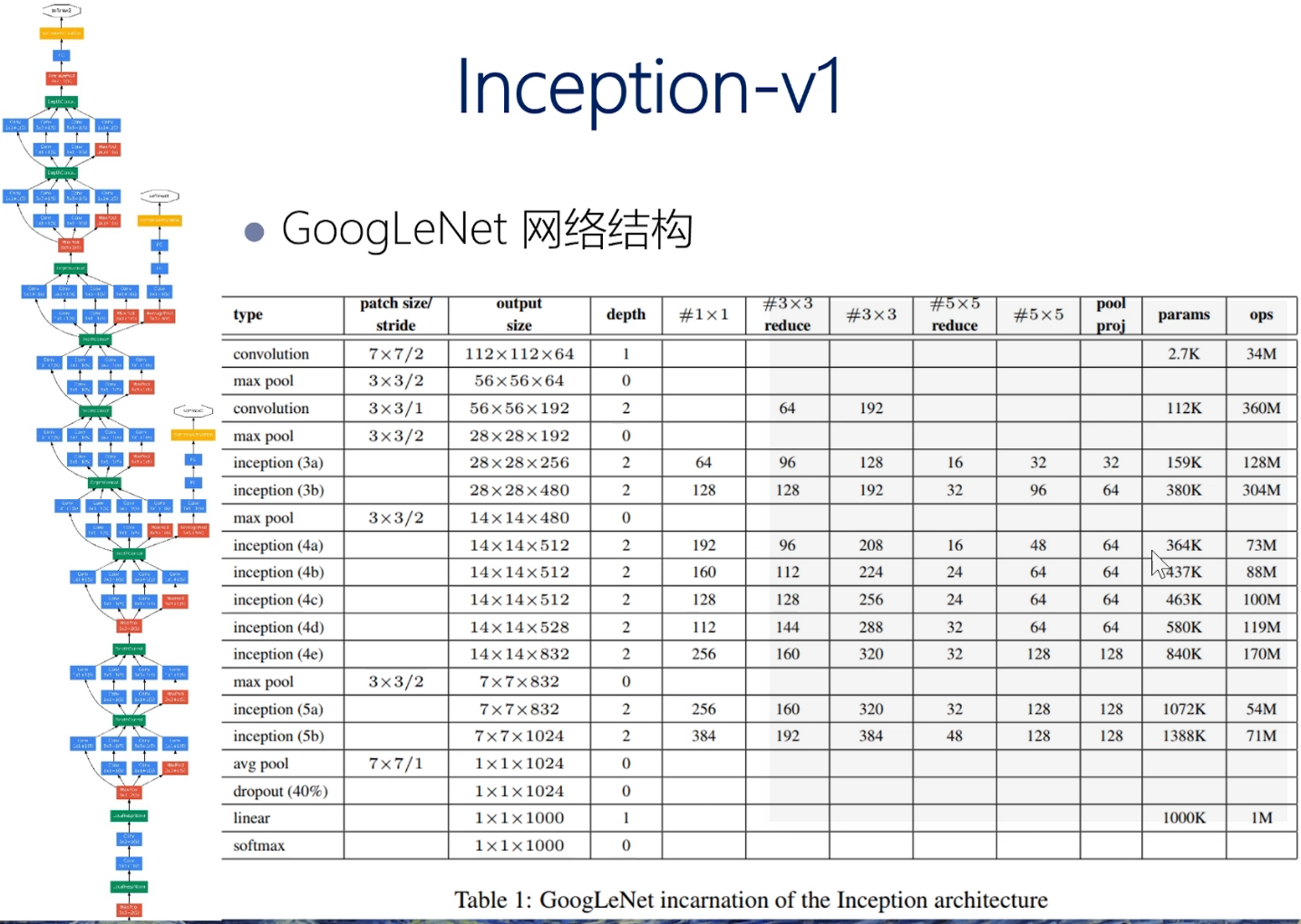 - Inception-v1(GoogleNet):Szegedy C, Liu W, Jia Y, et al.Going deeper with convolutions, CVPR2015:1-9.