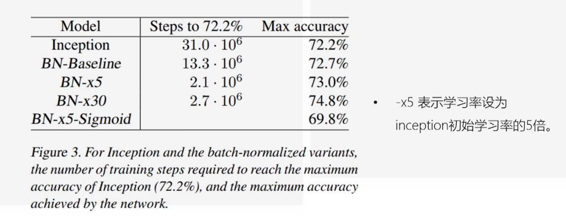 - BN-Inception: loffe S, Szegedy C, Batch normalization:accelearating deep network training by reducing internal covariate shift. ICML, 2015:448-456.
