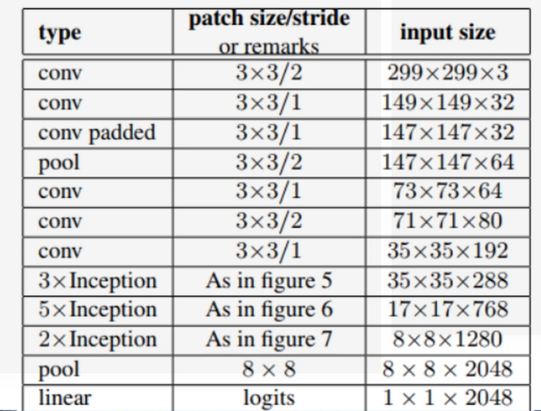 后面都是使用\(3*3\)的卷积核,最后得2048个特征向量,然后对1000类物体进行分类。