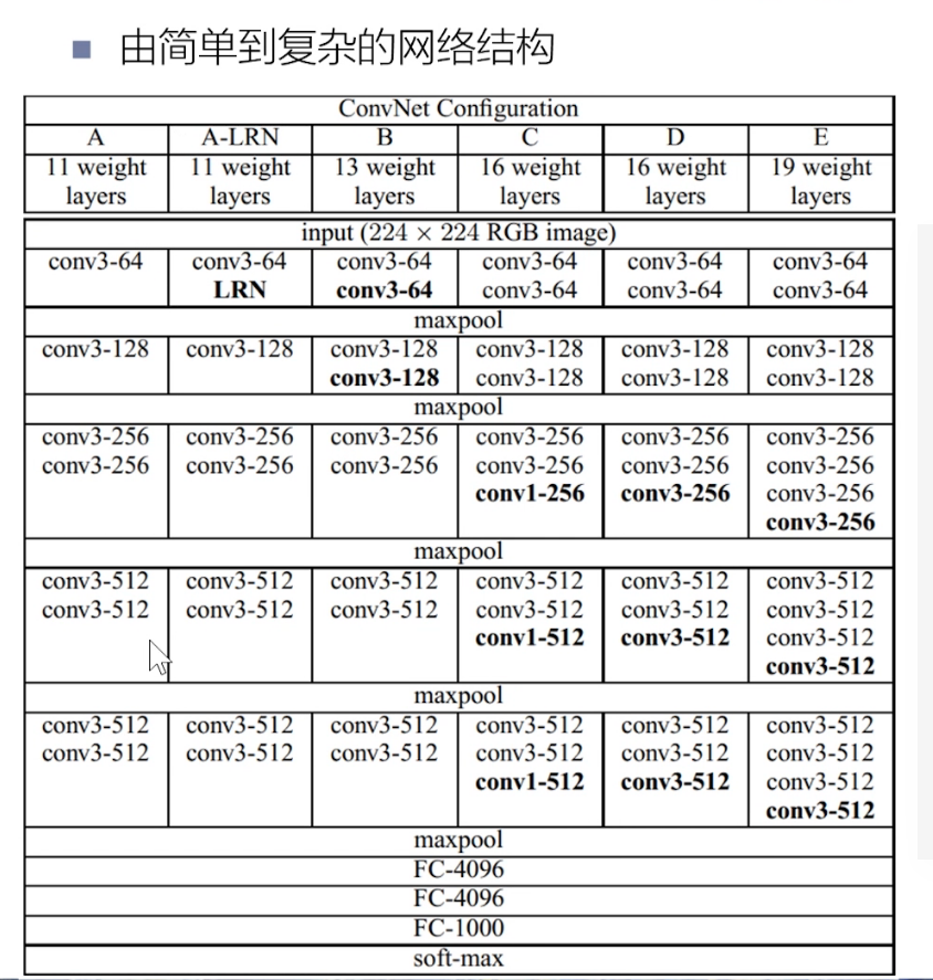 比如上图中先训练A(11layer),选择其中的conv3-64,conv3-128,conv3-256,conv3-256, FC-4096,FC-4096,FC-1000作为更深的网络(16,19)的相应层的初始权重,中间加的层权重随机权重,重新开始训练。