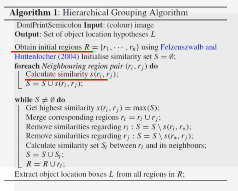 4)提取所有图像区域的目标位置框,并按层级排序(覆盖整个图像的区域的层级为1)。 - 在不同图像分割阈值、不同色彩空间、以及不同的相似度(综合考虑颜色、纹理、大小、重叠度)下。调用层次化分组算法,对所有合并策略下得到的位置框按层级*RND排序,去掉冗余框。
