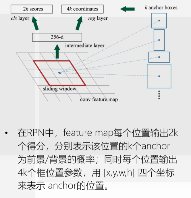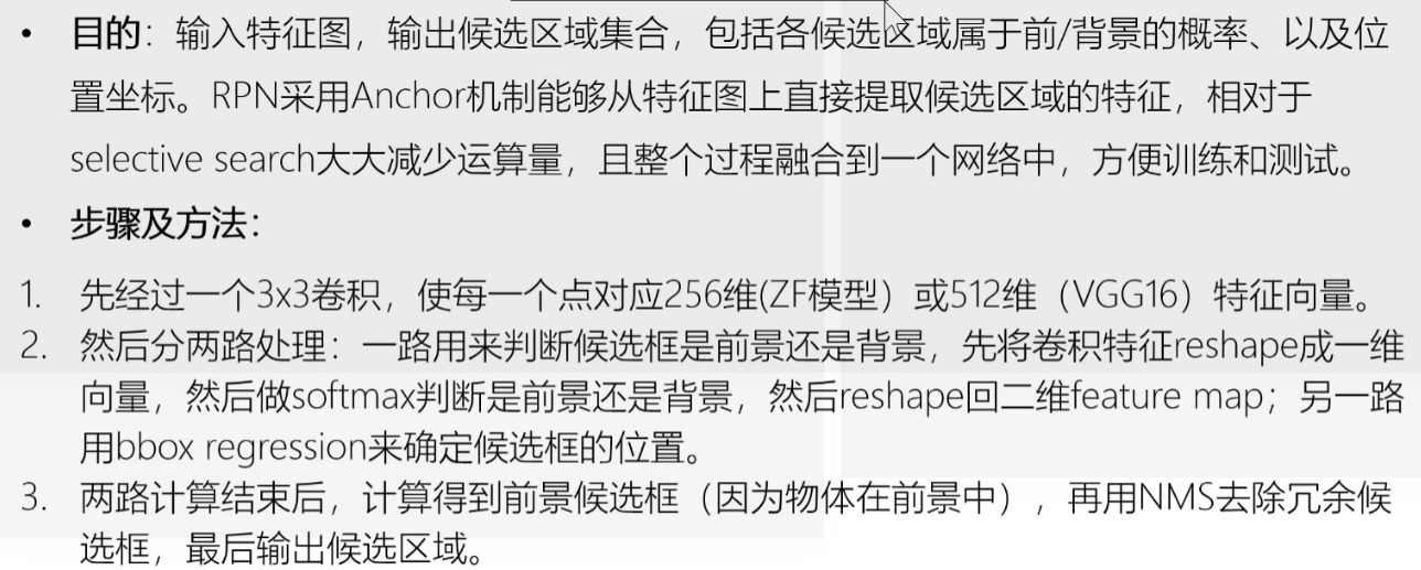 2. RPN层:生成候选区域,并用softmax判断候选框是前景还是背景,从中选取前景候选框并利用bounding box regression调整候选框的位置,得到候选区域。