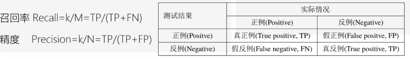 - 召回率/查全率(recall):选的N个样本中选对的k个正样本,占总的M个正样本的比例 k/M;