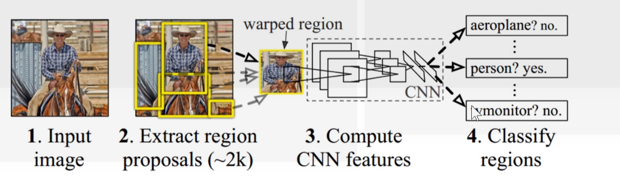 - 取一定个数的候选区域作为后续卷积神经网络的输入。(R-CNN取2000个)。