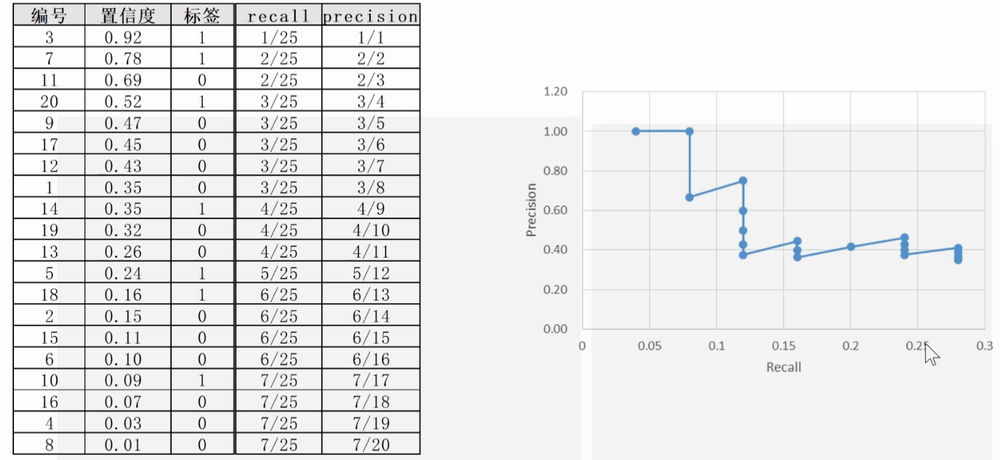 置信度(阈值)越低,选中的样本越多,精度越低,召回率越高。