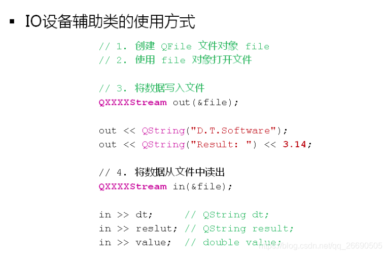把Qtring 和 浮点类型的数据保存到文件,使用QFile的 write方式很麻烦,但使用使用辅助类 QTextStream 和 QDataStream就很简单