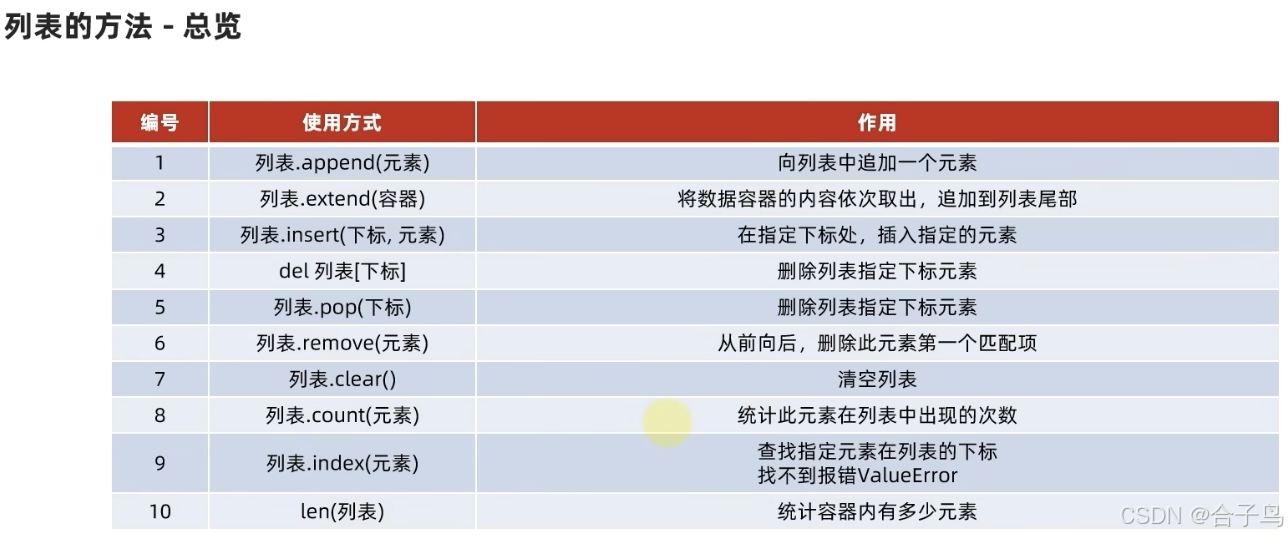 (二)列表的方法