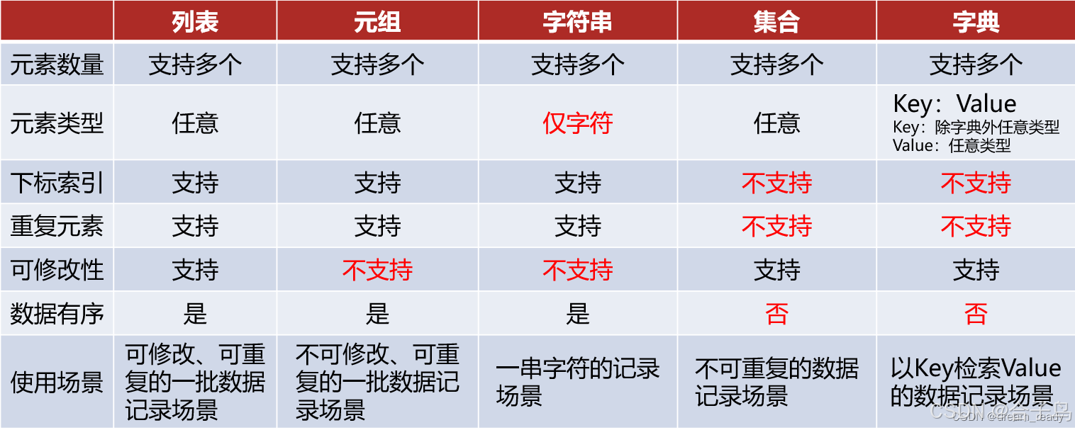 数据容器:列表(list)、元组(tuple)、字符串(str)、集合(set)、字典(dict)