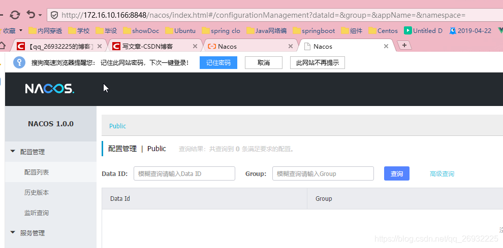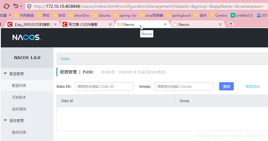 分别启动了两台Nacos:172.16.10.40:8848、 172.16.10.166:8848,都是单机模式启动的,启动有问题的可以查看之前的博客:https://blog.youkuaiyun.com/qq_26932225/article/details/86536837