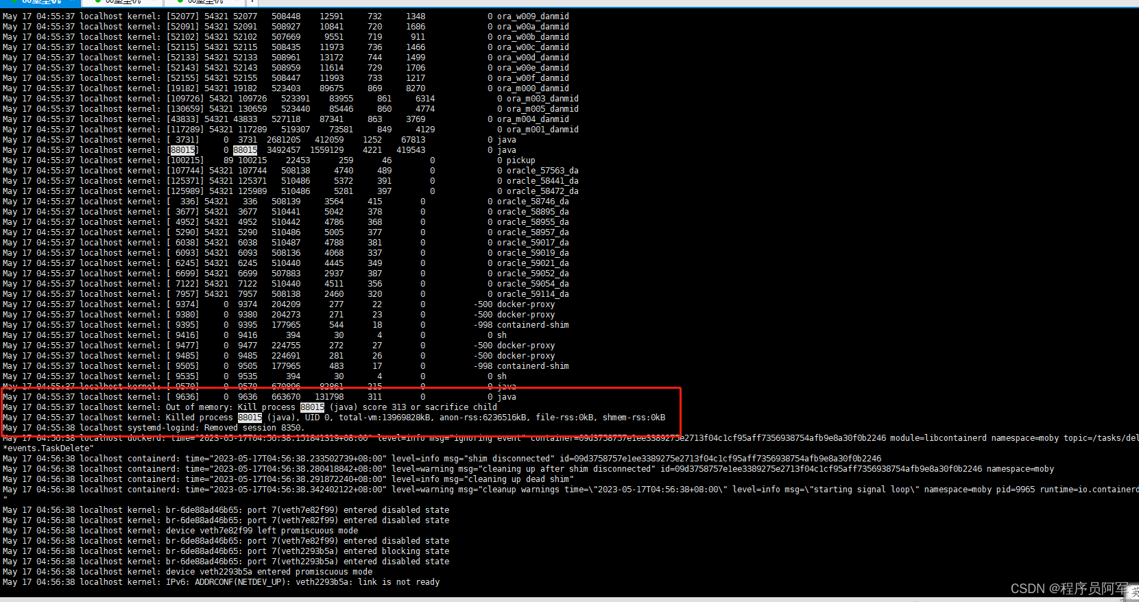 查看服务日志后,发现凌晨4点53并未产生相关的错误日志导致程序出现OOM,此时进行进一步分析,是否是linux杀掉了进程