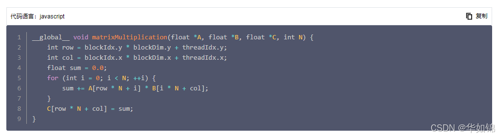 示例:在矩阵乘法中,两个矩阵的元素可以存储在全局内存中,以便所有线程都可以访问。