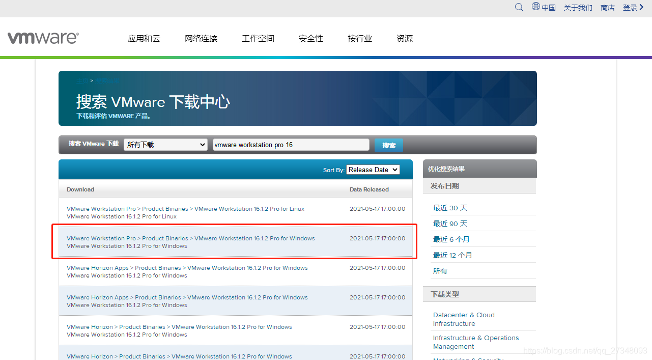 官方下载地址:https://my.vmware.com/cn/web/vmware/downloads/details?downloadGroup=WKST-1612-WIN&productId=1038