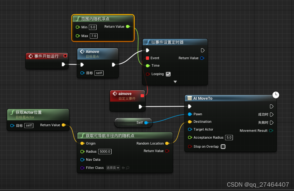 本文介绍了使用UE4进行游戏开发的实际操作经验,包括通过蓝图实现AI随机移动、角色加速跑功能、控制权转换等。此外还涉及了角色血量扣除、动画状态机设置及怪物属性设定等内容。