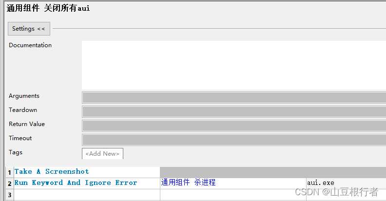 3. keyword_on_failure=ImageHorizonLibrary.Take A Screenshot(keyword) ----指定失败后的动作(可以跟自定义关键字)