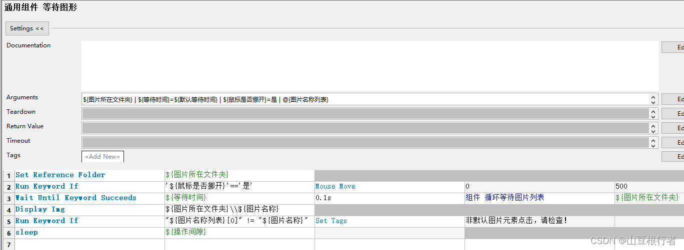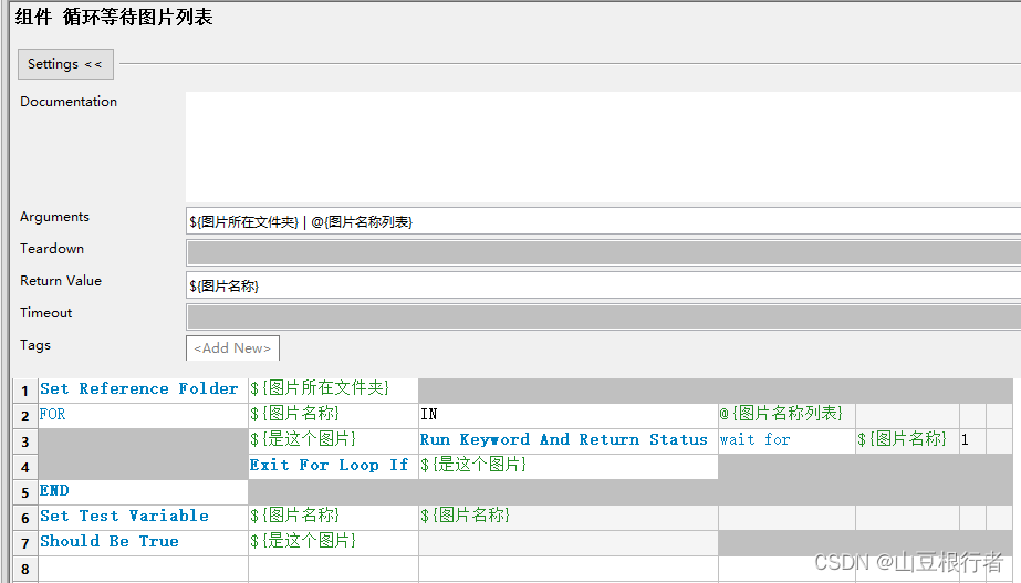 并且使用了Wait Until Keyword Succeeds来调用循环图片列表的关键字,用来达到可以循环遍历指定图片的目的。
