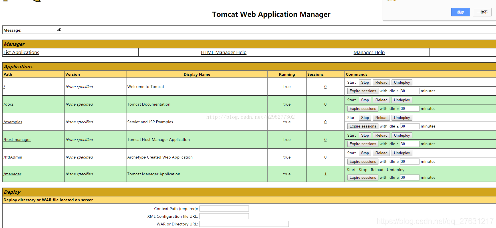 11.manager这个组件的设计是为了方便远程管理tomcat,比如重启,升级等。不用进入到服务器就可以直接操作,前提是必须先给用户授权。下面是tomcat的manager的页面。