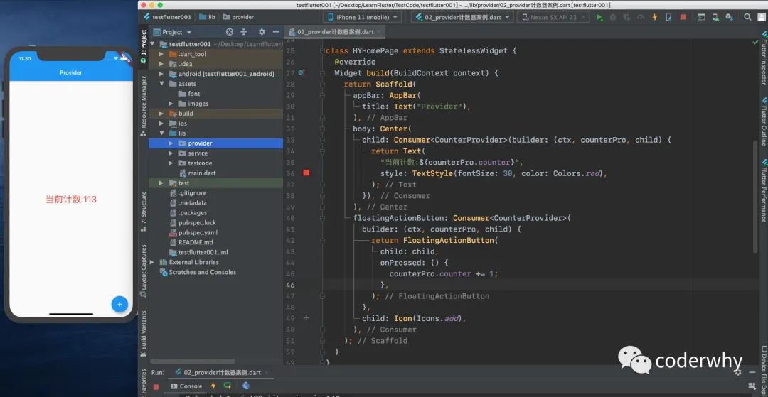 我们先来完成一个简单的案例,将官方计数器案例使用Provider来实现: