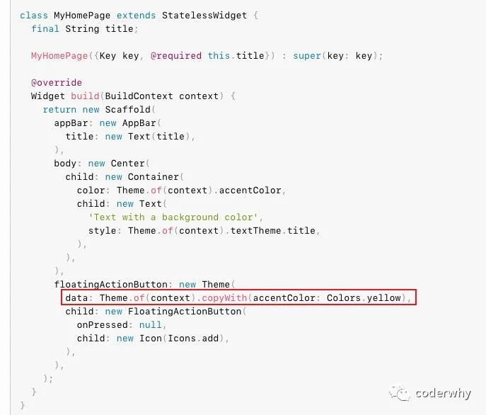 非常简单,只需要在Widget的父节点包裹一下Theme即可