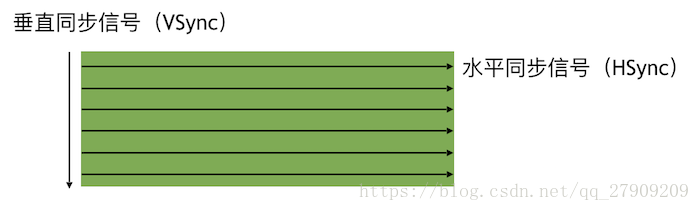 如果要显示一帧画面的话:首先会发出垂直同步信号,就表示 即将显示一页的数据、一帧的数据。首先会发出水平同步信号,就是一行一行的数据搞定,也就是一屏幕的一行的数据都显示完了,也就是刚开始发出垂直同步信号,就意味着要显示新的一帧数据,当最后一行水平同步信号发完,就会又发出一个新的垂直同步信号,显示下一帧数据,如果每一帧都连起来,就像动画一样了。