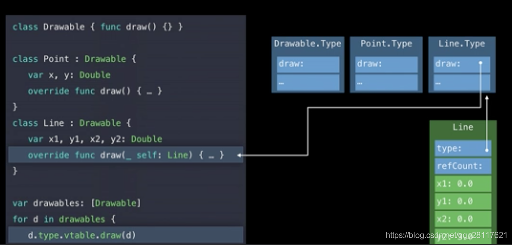 2.1swift中根据方法所定义的位置来讲会用到上面所说的三种方法调度方法。