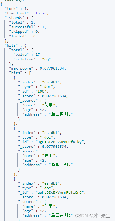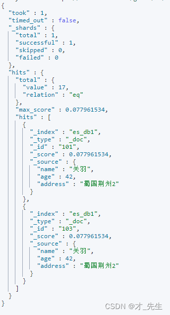 bool表示查询结果是否满足,固定写法。 must表示must数据里面的查询条件同时成立相当于and查询。如果是must改为should,则表示任意条件满足,相当于or