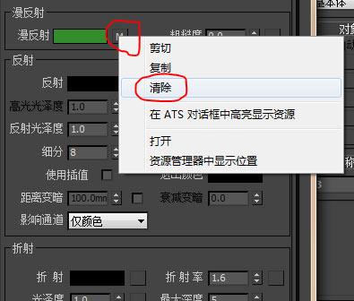 1、在贴图通道,对贴图通道按钮右键——清除 。贴图就被删除了。