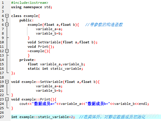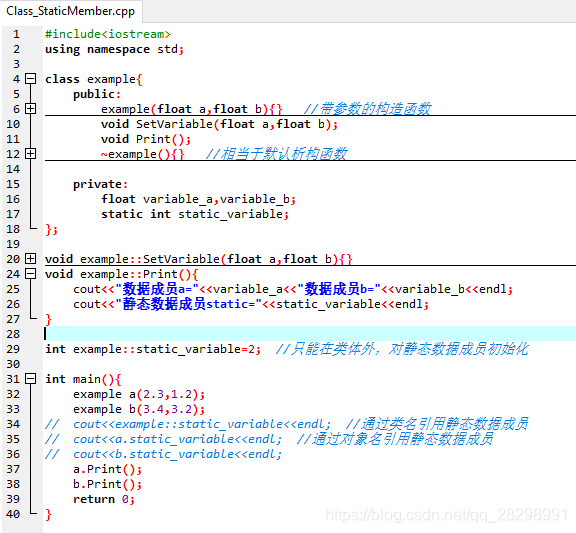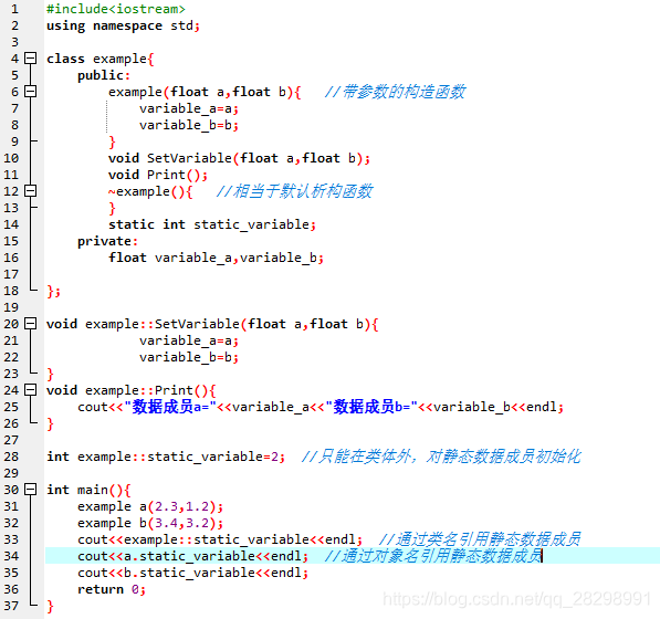- 在静态成员函数中可以直接引用其静态成员,而引用非静态成员时需用对象名引用