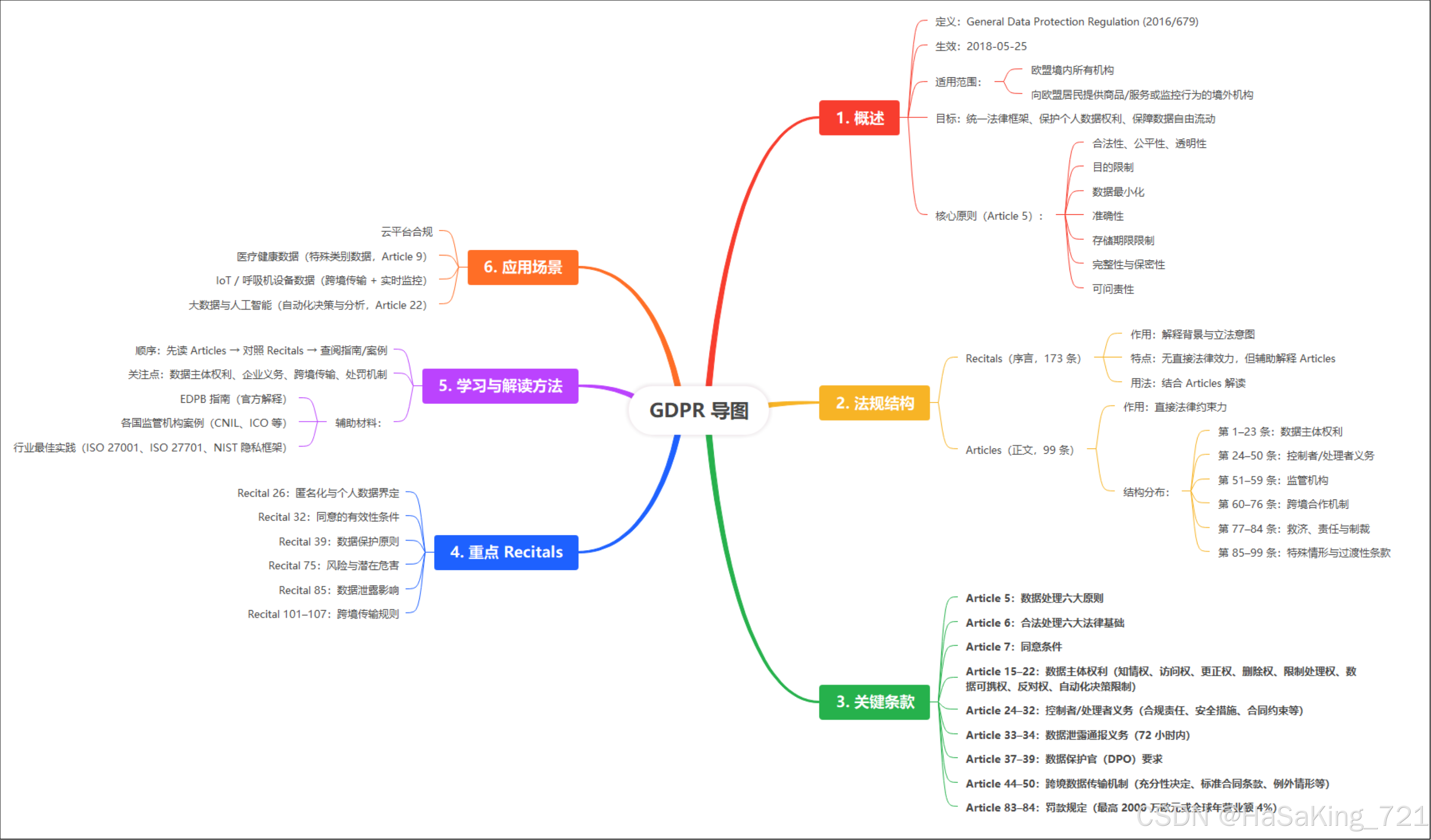 | CHAPTER XI 最终条款 (Final Provisions) | Article 94-99 | 法规过渡安排与生效时间 | Article 94:废除旧指令(95/46/EC失效)。 Article 95:与ePrivacy指令关系(2002/58/EC并行适用)。 Article 96:现有国际协议(需符合GDPR)。 Article 97:委员会报告(每4年评估法规)。 Article 98:其他法案审查(更新欧盟旧法)。 Article 99:生效时间(2016年5月24日通过,2018年5月25日适用)。 |