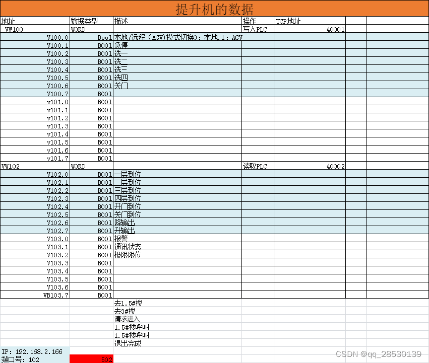 第1步:首先,提升机厂家的PLC程序员任工在【PLC信号对接点位需求表】中写了个表如下:
