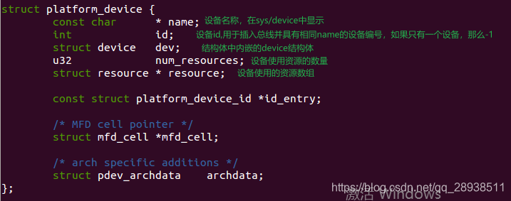 注册设备使用结构体platform_device,该结构体在头文件“viminclude/linux/platform_device.h”中。头文件中也有注册设备和卸载设备的函数。
