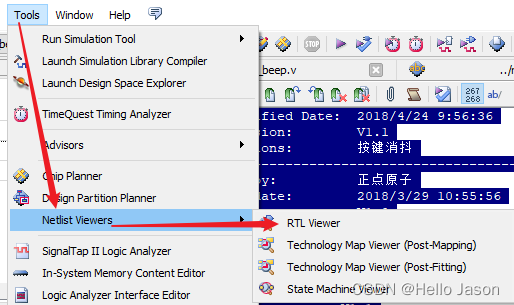 后点击菜单栏的【 Tools】→【 NetList Viewers】→【 RTL Viewer】,如图 9.4.2所示: