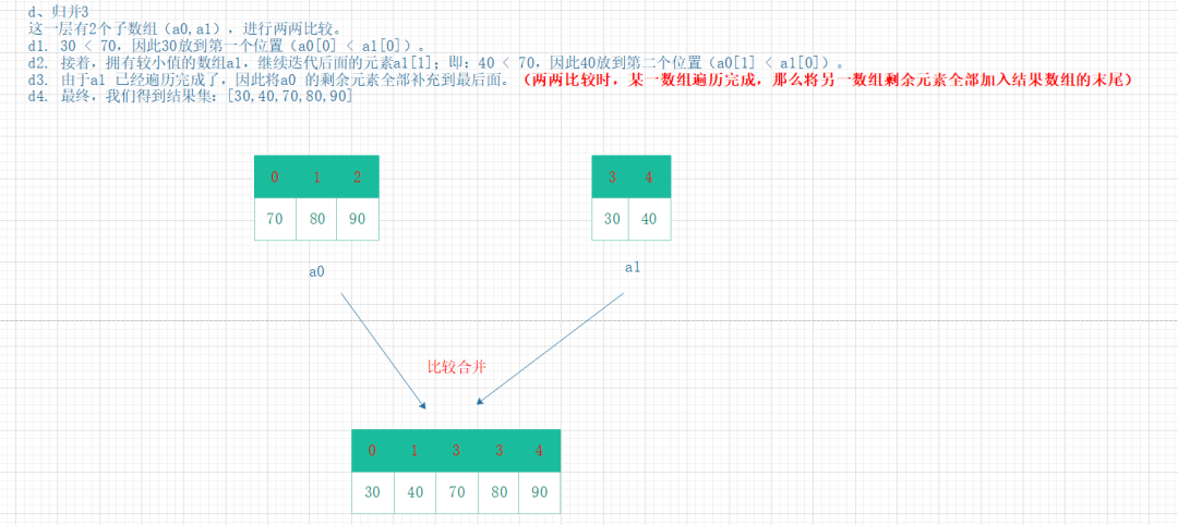 mergeArray(array, first, mid, last, temp); // 再将二个有序数列合并