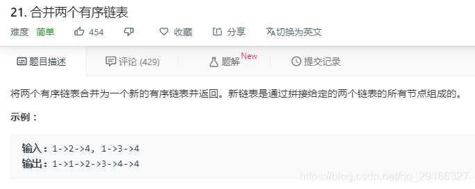 题目:合并两个有序链表