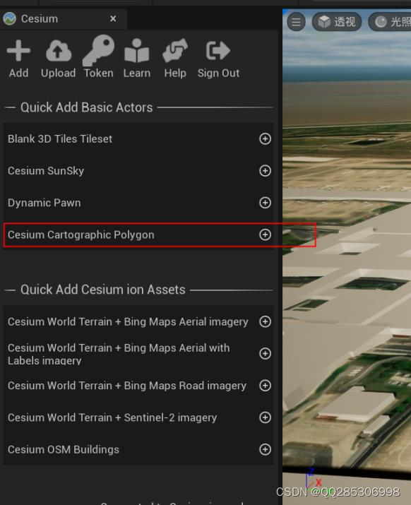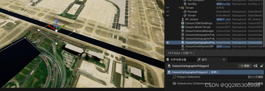 1.在关卡中添加一个 CesiumCartographicPolygon actor。您可以通过在