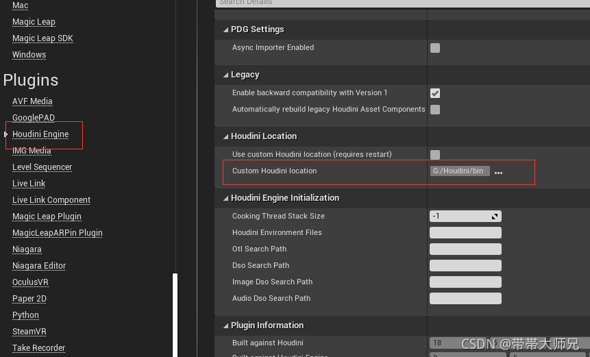 此时得注意你的Houdini版本和HoudiniEngineV2的版本最好是一样的