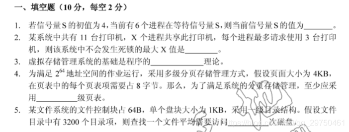 (1)首先,页面大小为4KB,故页内偏移需要12位来表示。其次,系统虚拟地址一共48位,所以剩下的48-12=36位可以用来表示虚页号。每一个页面可以容纳的页表项为:4KB/8B=29(也就是可以最多表示到9位长的页号),而虚页号的长度为36位,所以需要的页表级数为:36/9=4级。