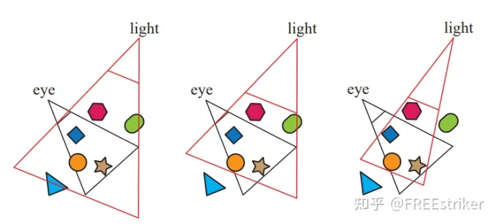 Warp方法针对的点是:相机近处的点会占用渲染结果更多的像素,而远处的点只会占用较少的像素,那么在渲染阴影贴图的时候,通过某种方法,对其进行扭曲,让近处的占有更多阴影贴图的像素,这样近处的渲染效果就会变好一点,具体的方法有PSM和、LiSPSM。因为这类方法好像用的比较少,几乎没有游戏用这种方法(也有可能是我没找到),所以我也是就大概看了看,没有实际实现出来。