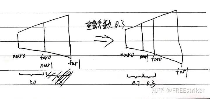 其实就是除了第一个子平截头体的近平面都向相机移动一段距离罢了。