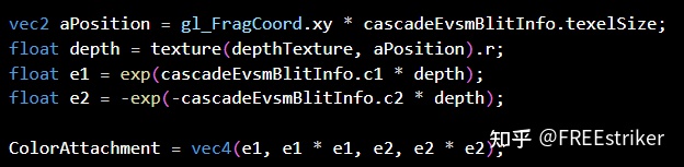所以这么来说,EVSM的流程相比VSM,只是将模糊的对象变为了 ecx 与 −e−cx ,其他都是与VSM一样的。而VSM与普通的ShadowMap方法相比,也只是增加了一阶矩二阶矩模糊和单边切比雪夫不等式的计算,流程是很清晰的。