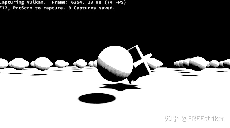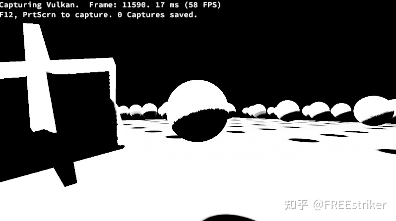 和之前的场景比,把一个小板子换成了25个巨大的板子作为底面,还在除了中间的大底面上,每个底面上放了9个球体,用来验证大场景远处的阴影正确性。除此之外,把Forward+渲染器中之前可配置的流程都固定下来,AO效果使用的是SSAO,OIT用的是A-Buffer,阴影用的是CSM。并且,新添加了一个渲染器,用来在屏幕空间内可视化阴影的效果,方便Debug的时候快速的看到阴影的效果。