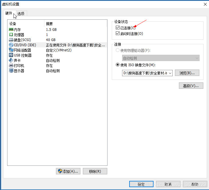 step1:右键虚拟机”设置“----”CD/DVD“----”使用ISO映像文件“----”浏览“-----确定