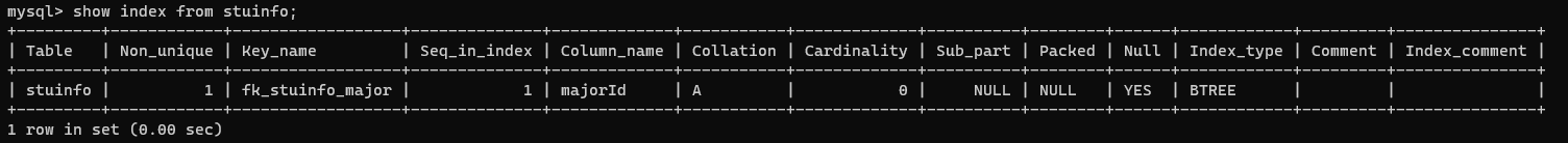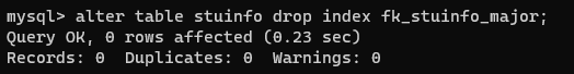 alter table stuinfo drop foreign key fk_stuinfo_major;Terminal显示语句执行成功: