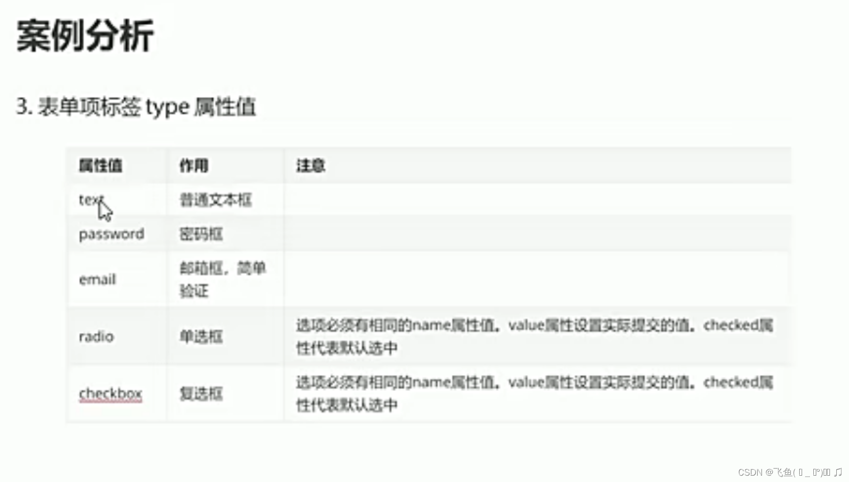 <input type="radio"/> 单选框,必须有相同的name属性值,value属性真实提交的数据,checked属性默认选中