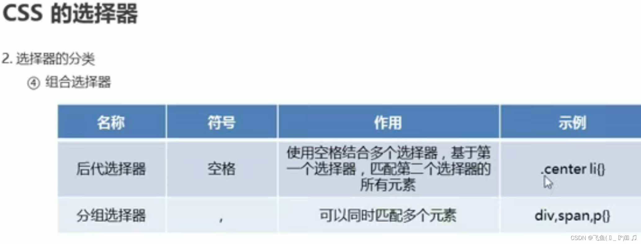 该文章演示了如何使用CSS中的后代选择器来设置HTML元素的样式。通过实例展示了如何将红色应用于具有类.centerli的li元素,以及如何将蓝色应用于所有的span和p元素。