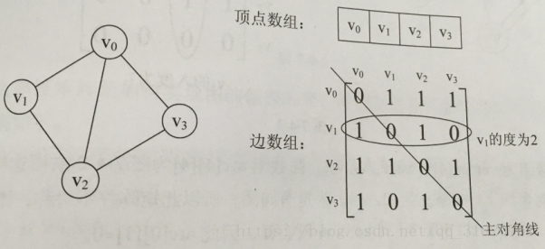 邻接矩阵存储方式是用两个数组来表示图。一个一维数组存储顶点,一个二维数组(称为邻接矩阵)存储边或弧的信息。