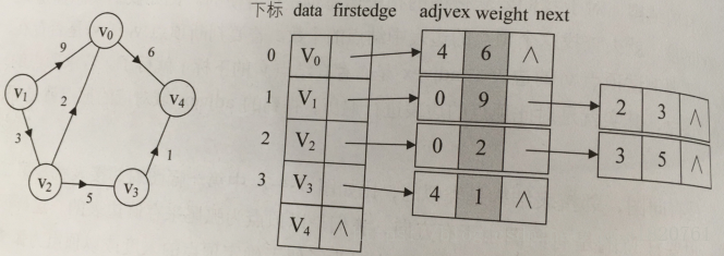 2、图中Vi的所有邻接点构成一个线性表(因为邻接点的个数不定,所以用单链表)。