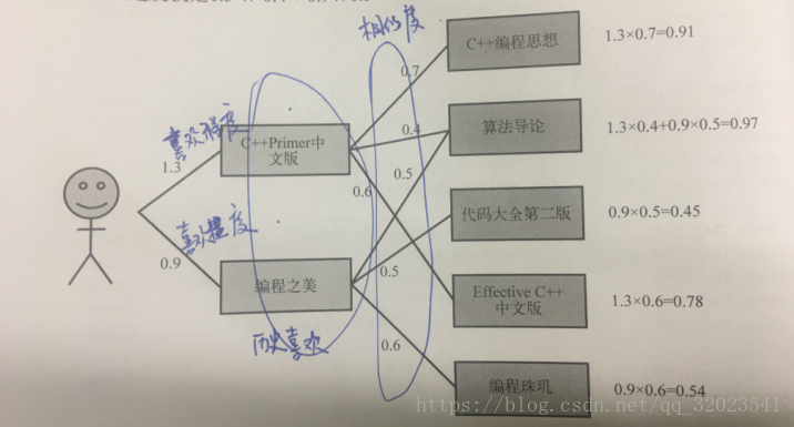 下图是 ItemCF 算法的图形表示: